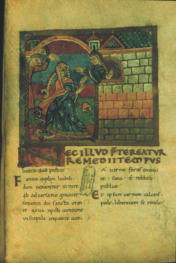 Fig. 1. From the window of her cell, Saint Radegund expels a demon from the possessed woman Leubile, miniature painted c. 1100, Poitiers, Bibliotheque municipale, MS. 250 (Life of Saint Radegund), fol. 35r. Illustration 1 2 3 4 5 6 7 8 Back to Meditations on the History of ART |