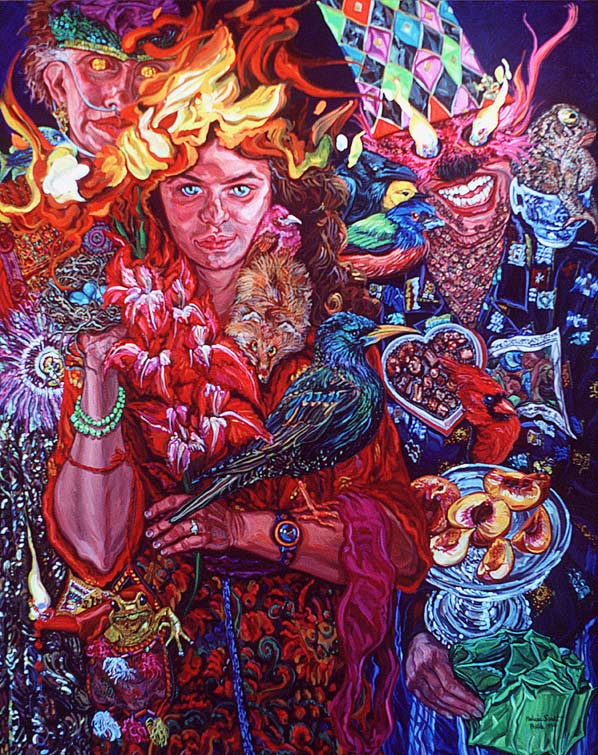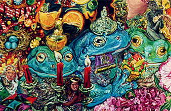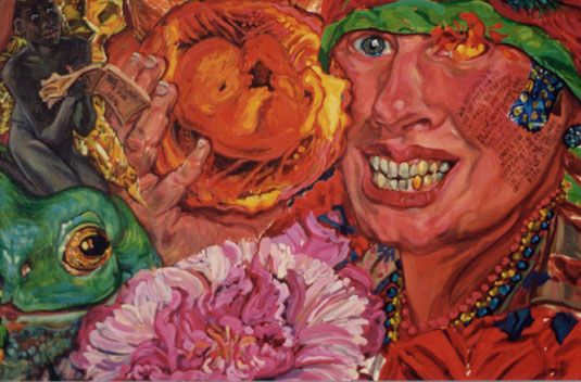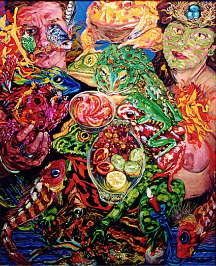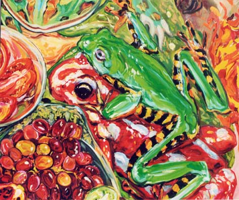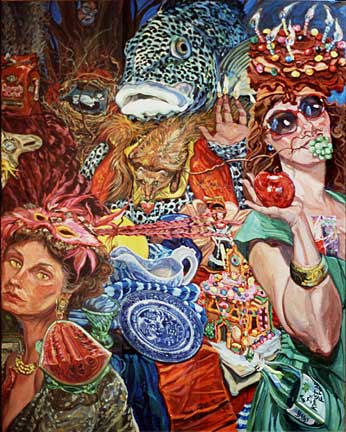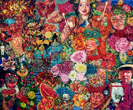 friends, community and garden appear in painted flora, fruit, fetuses,